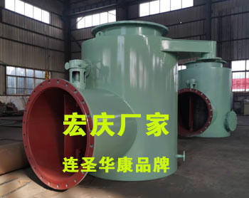 4、分匯器是一個(gè)三通閥,通過(guò)導(dǎo)向板的切換可使膠球進(jìn)入需要清洗的一側(cè)凝汽器中工作。一般一臺(tái)機(jī)組需兩臺(tái)分匯器,其進(jìn)口通徑為DN100,分配口為DN89,膠球投用時(shí)可通過(guò)窺視窗觀察運(yùn)行情況。FH型分匯器(清潔海綿膠球切換三通管閥)